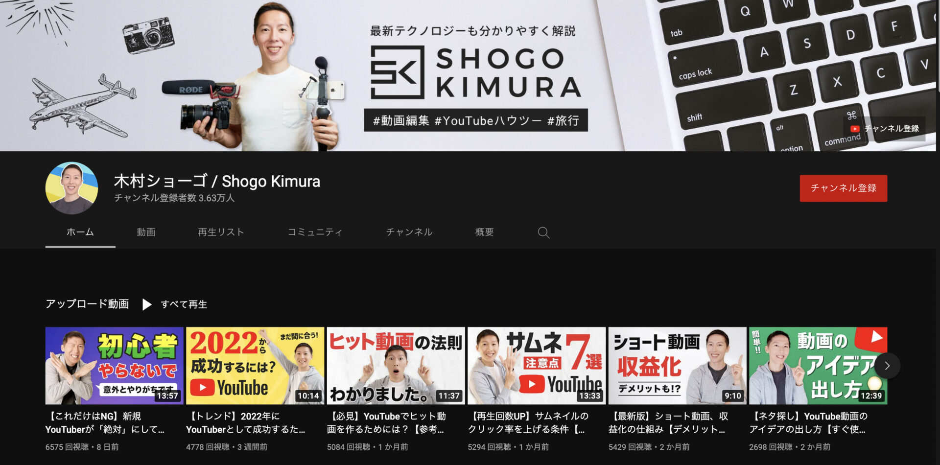 「木村ショーゴ / Shogo Kimura」さんの動画は、とにかく見やすくて、とっつきやすいのが印象です。基本は初心者向けの動画として様々なチュートリアル動画を配信してくれているのですが、これがとても的確!「あれどうやるの?」「これどうやるの?」といった欲しい情報をとにかく全部動画にして出してくれています。聞かなくてもここから探せばほぼ答え出てくるみたいな感じですね。「Final Cut Pro X」の初心者ユーザーさんにとっては、強い味方になること間違いなしです!