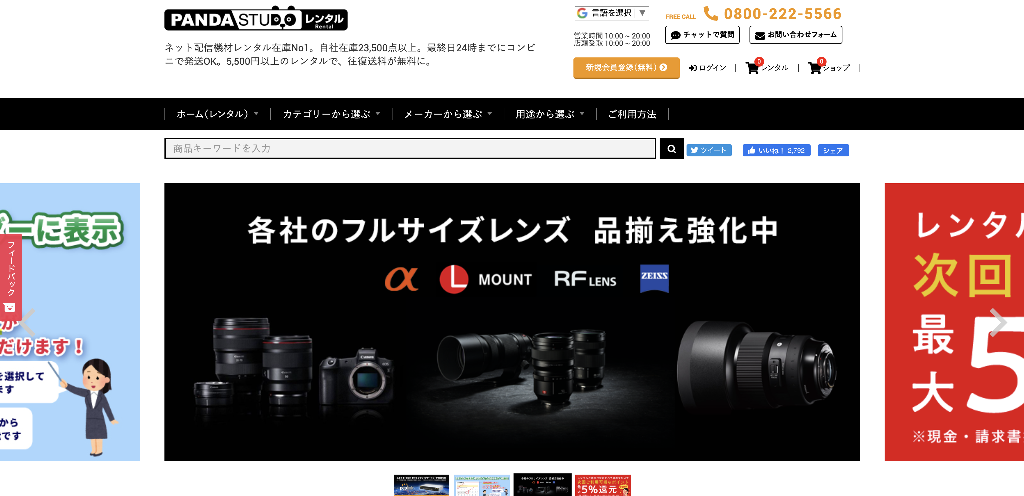 スマホ用ジンバルを含め、カメラやカメラレンズなど様々な製品のレンタルを行っているショップが多数あります。