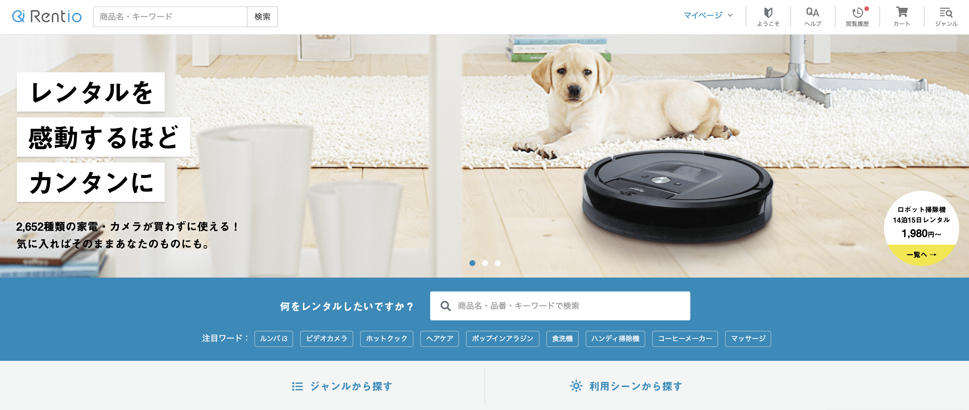 ジンバルのみならず、豊富に取り揃える家電製品もレンタル可能なレンティオ。