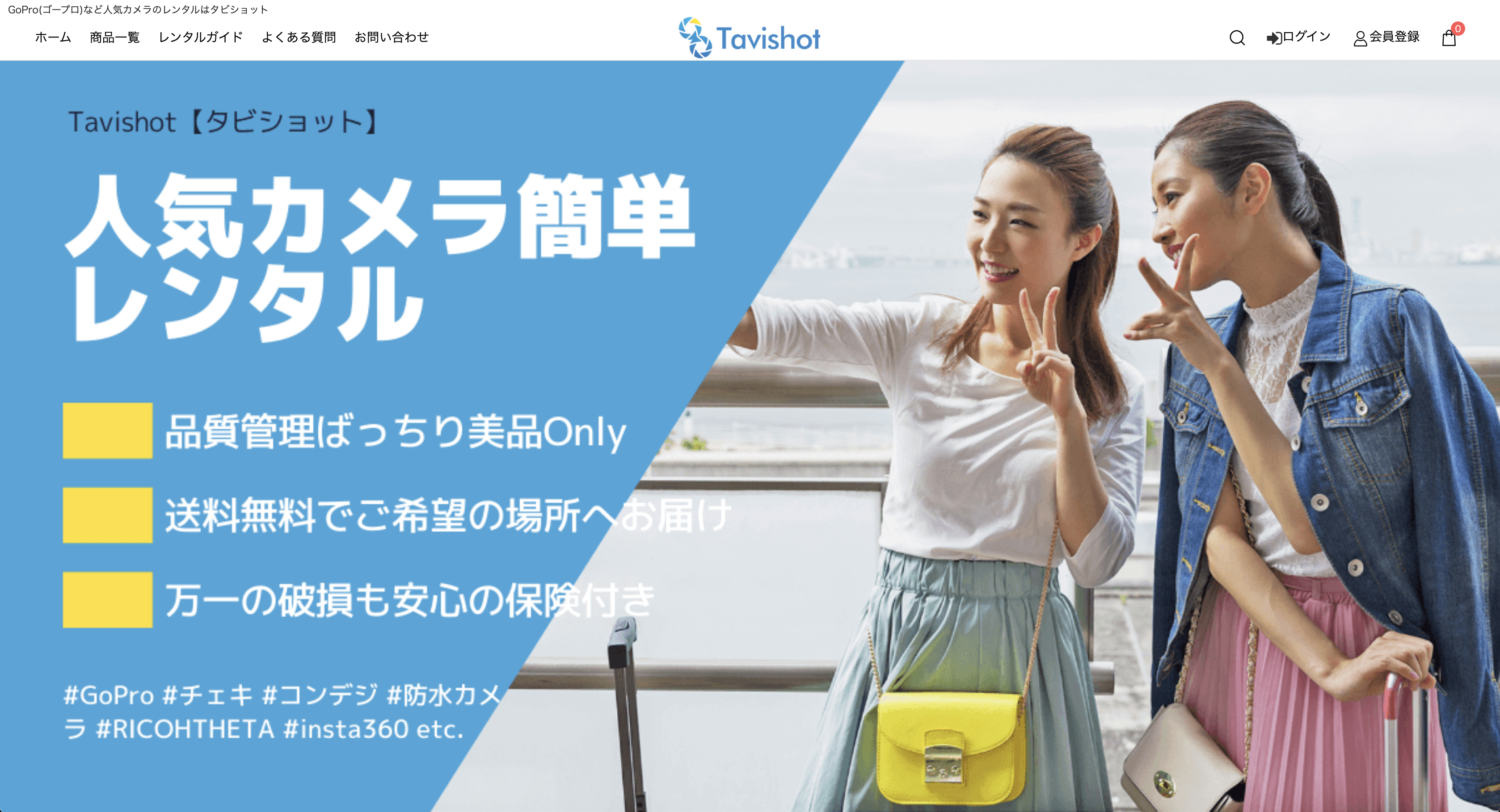 Tavishot(タビショット)という名前の通り、旅行などに最適なカメラやガジェットなどの備品をレンタルできるサービスです。